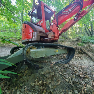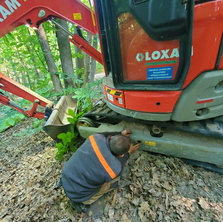 L'affaire n'a pourtant pas été de toute simplicité! Certains monticules ou tremplins qui appréciaient la déclivité prononcée des lieux, plaisaient moins à la pelleteuse! Il a fallu remettre la chenille en place!